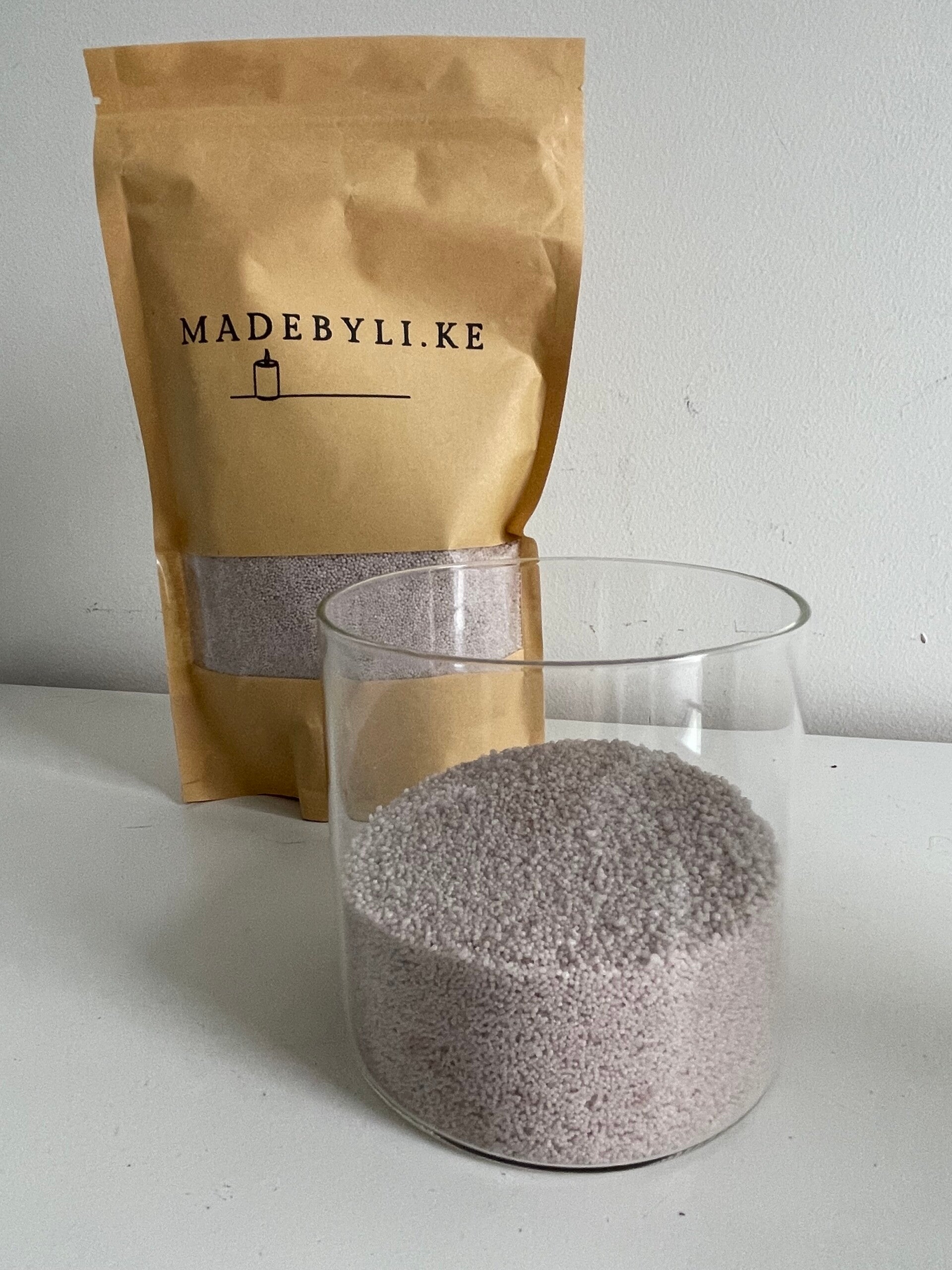 Inhoud: 400 gram kaarsenzand en 8 lontjes